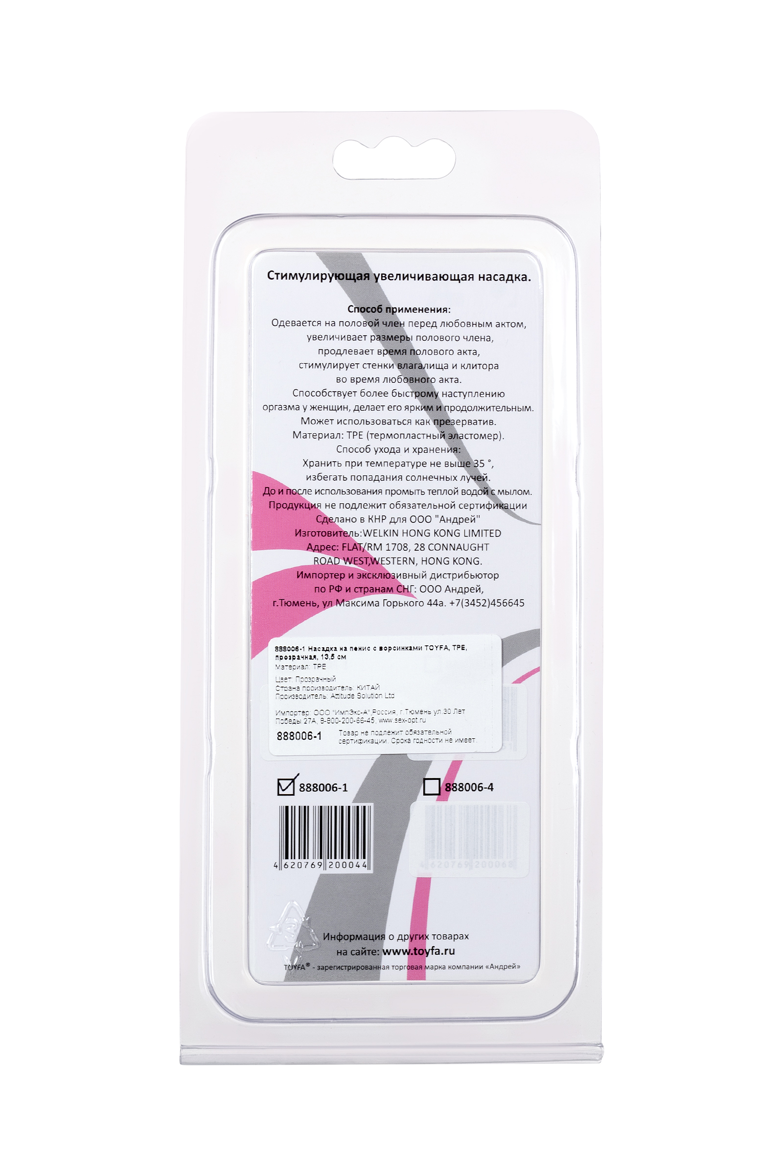 Насадка прозрачная удлиняющая. Имеет эластичные шипики и шарики.С помощью этой насадки можно увеличить длину пениса на 5 см., обеспечить стимуляцию стенок влагалища.